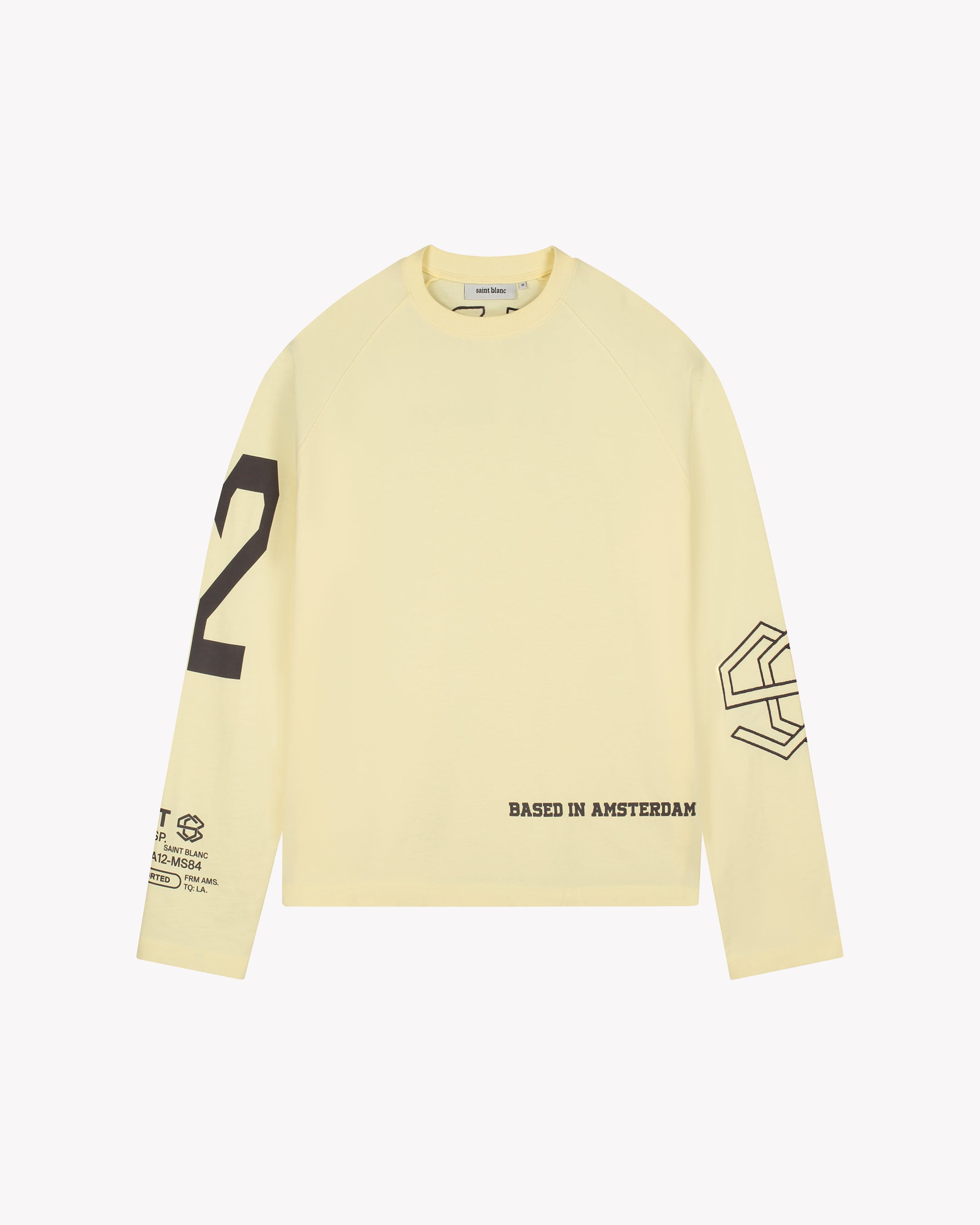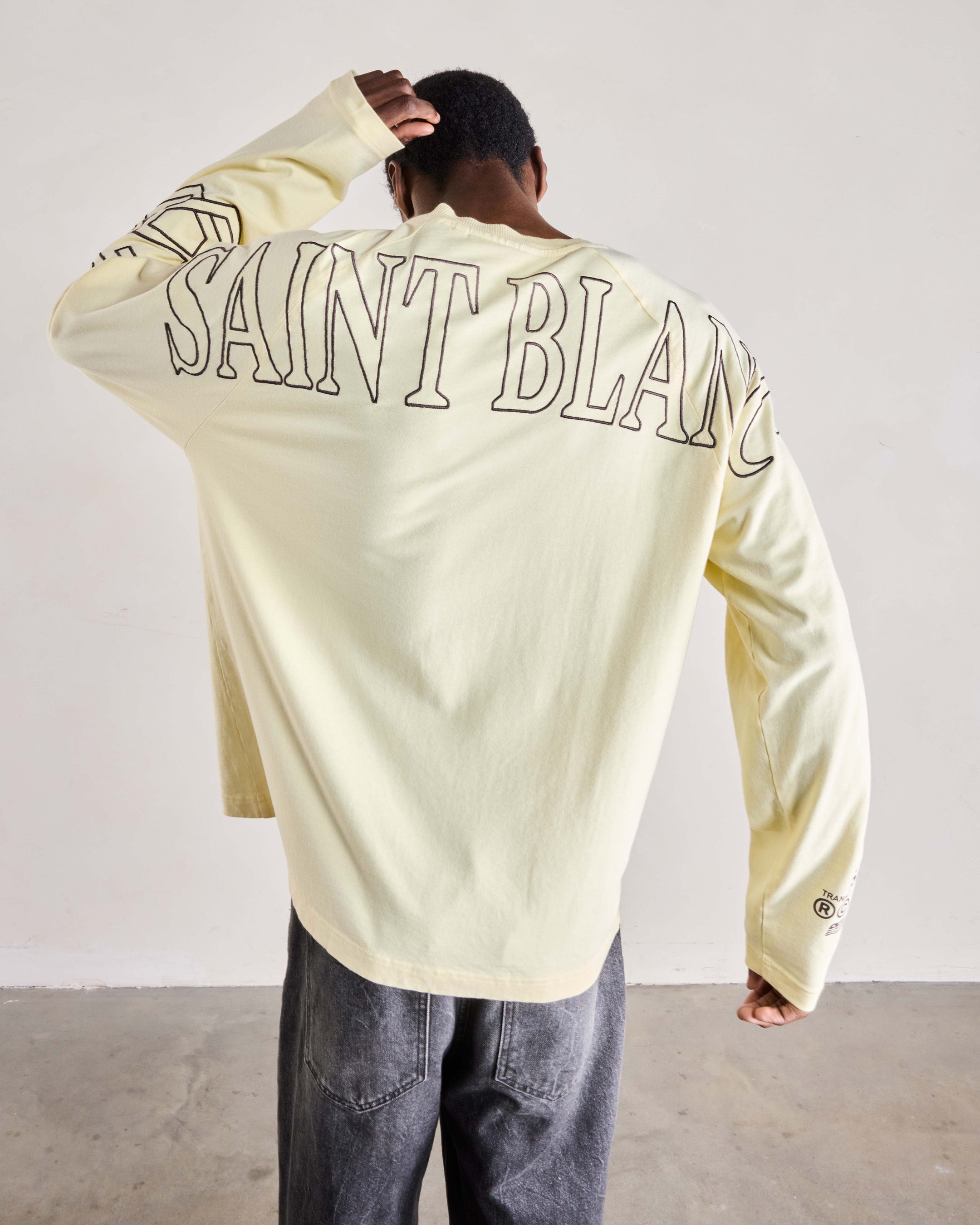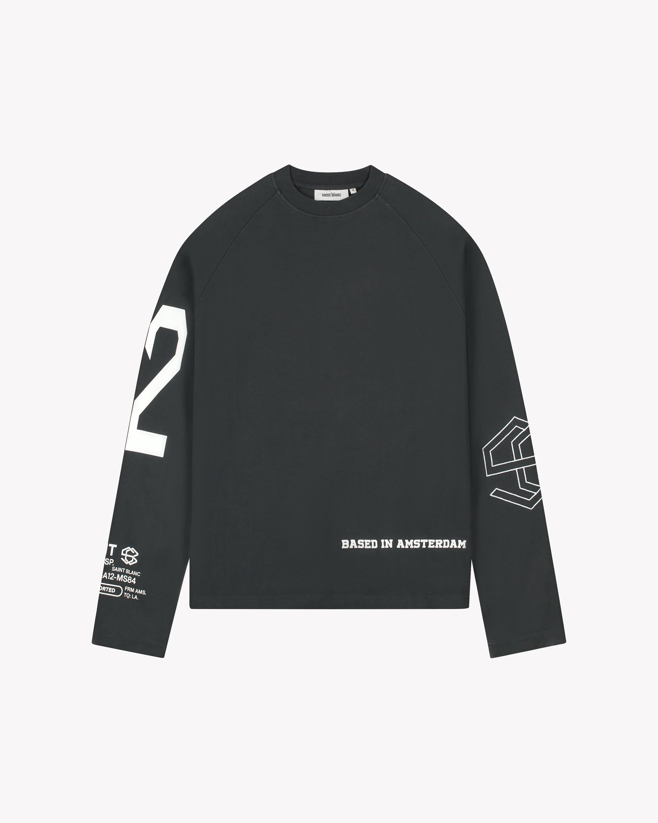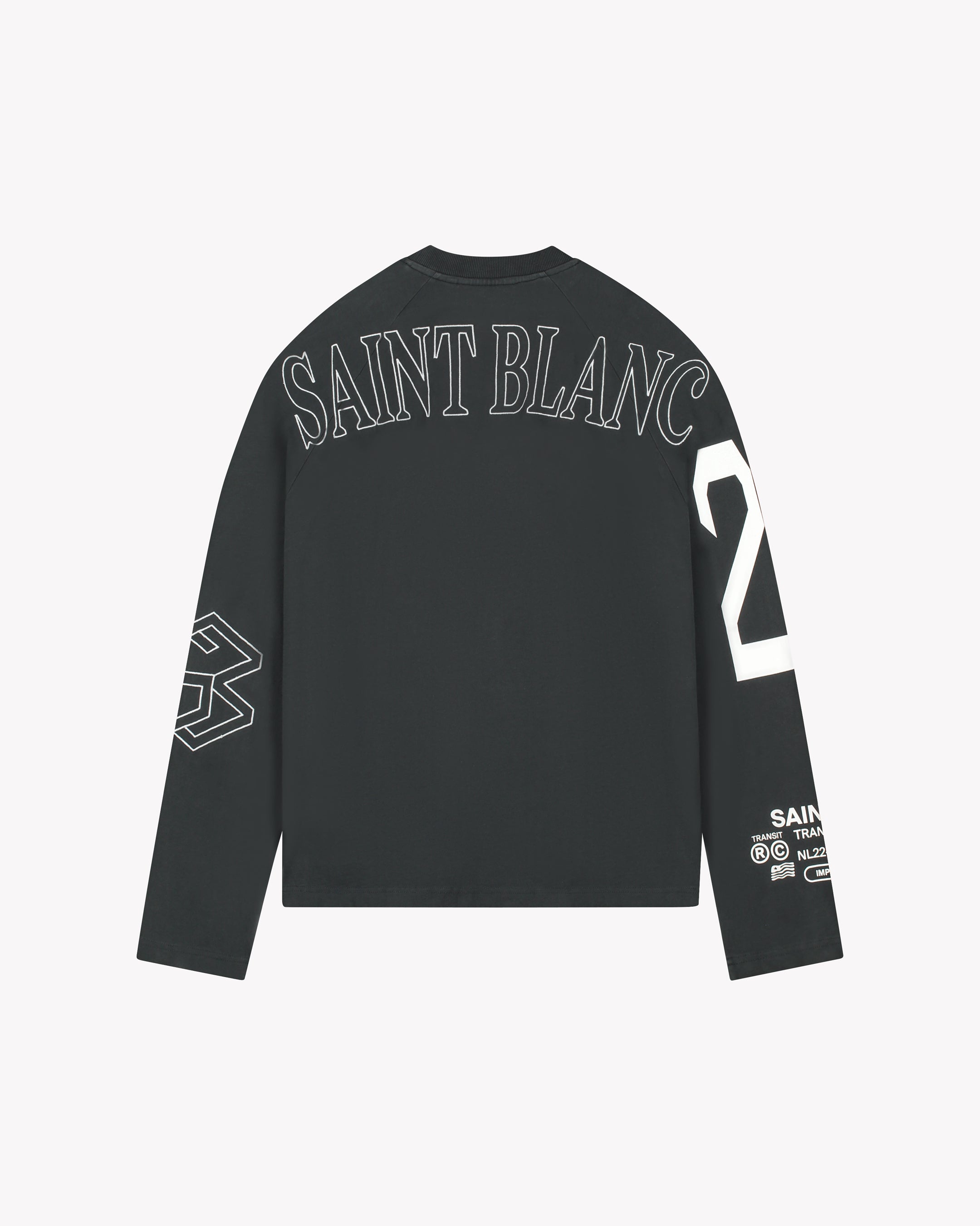 A bold graphic essential rooted in Saint Blanc’s Amsterdam identity. This Longsleeve combines clean structure with statement branding, featuring the signature arched SAINT BLANC print across the back and subtle graphic details throughout the sleeves and hem. Crafted from premium midweight cotton jersey and finished with raglan sleeves for a relaxed, athletic silhouette.