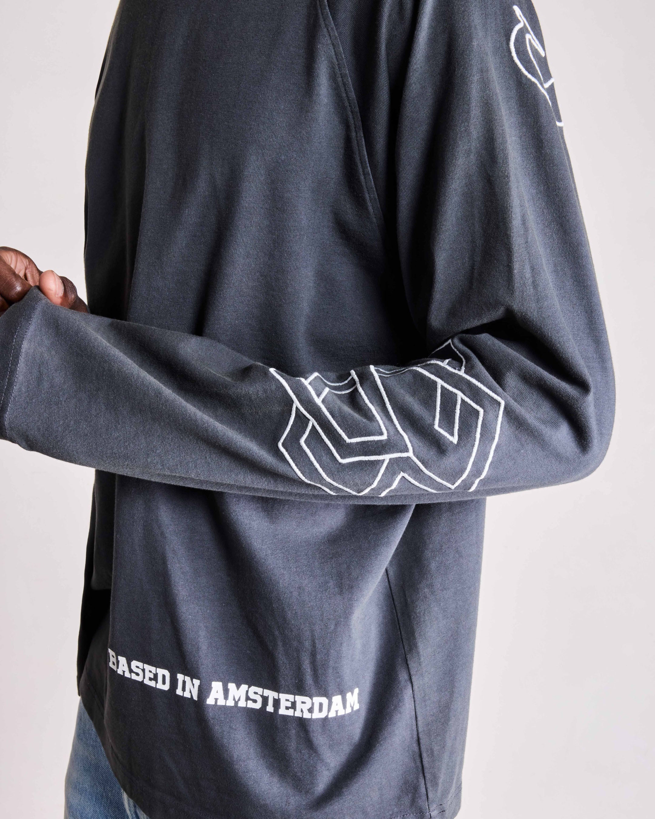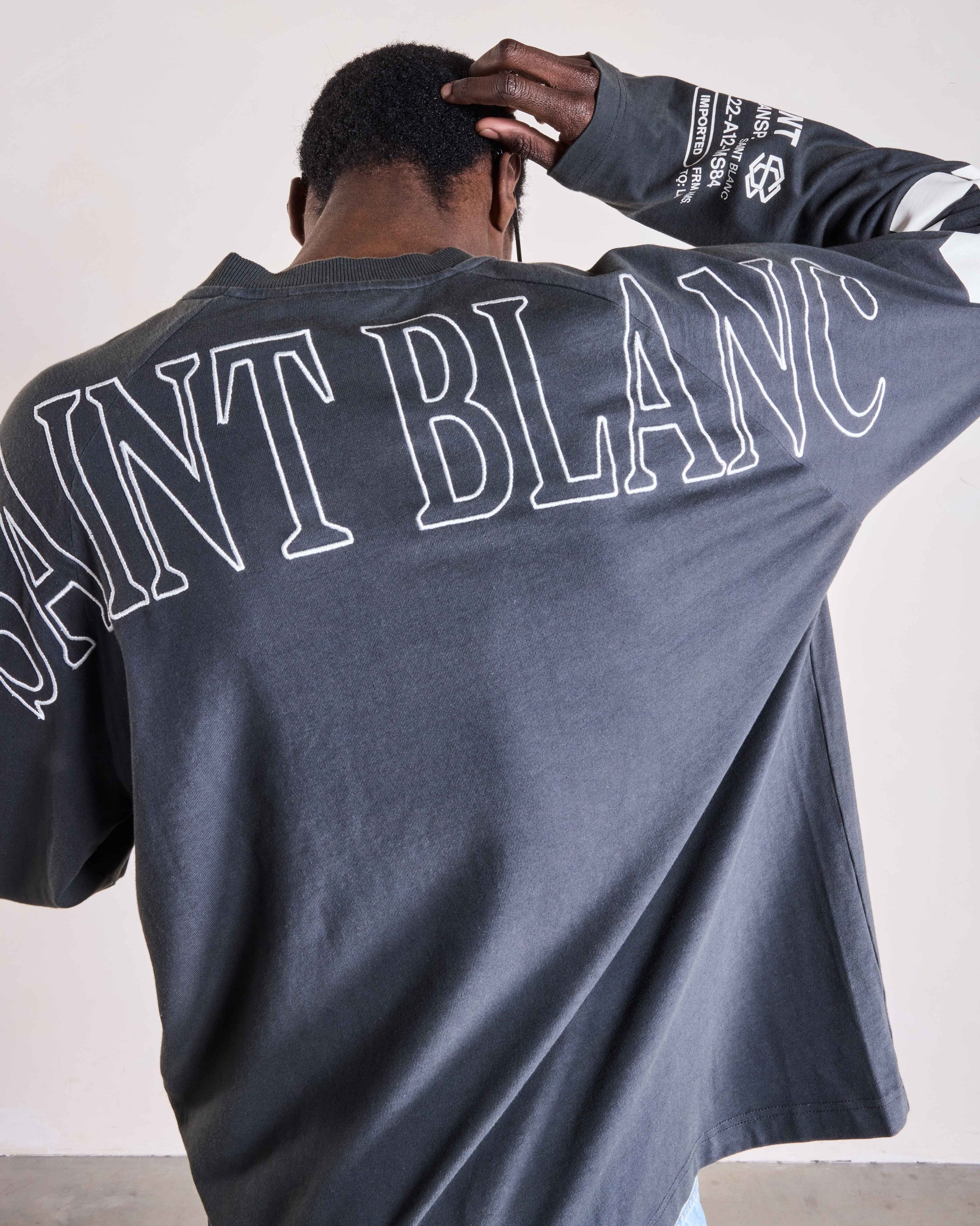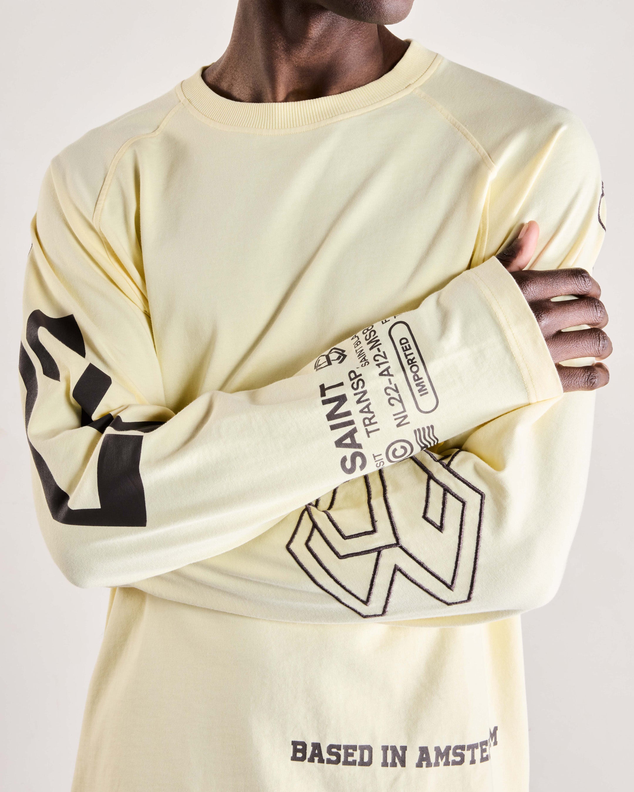 A bold graphic essential rooted in Saint Blanc’s Amsterdam identity. This Longsleeve combines clean structure with statement branding, featuring the signature arched SAINT BLANC print across the back and subtle graphic details throughout the sleeves and hem. Crafted from premium midweight cotton jersey and finished with raglan sleeves for a relaxed, athletic silhouette.