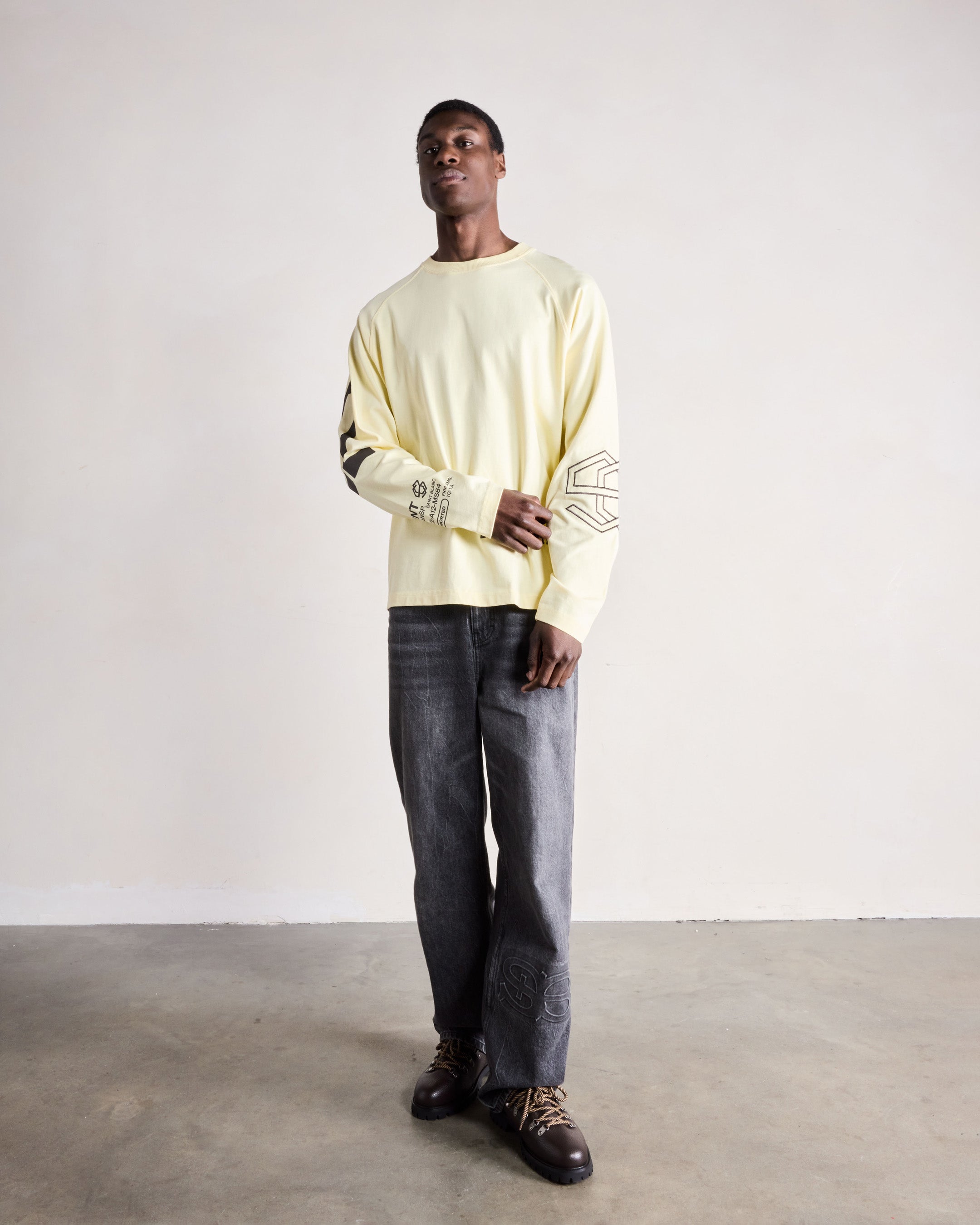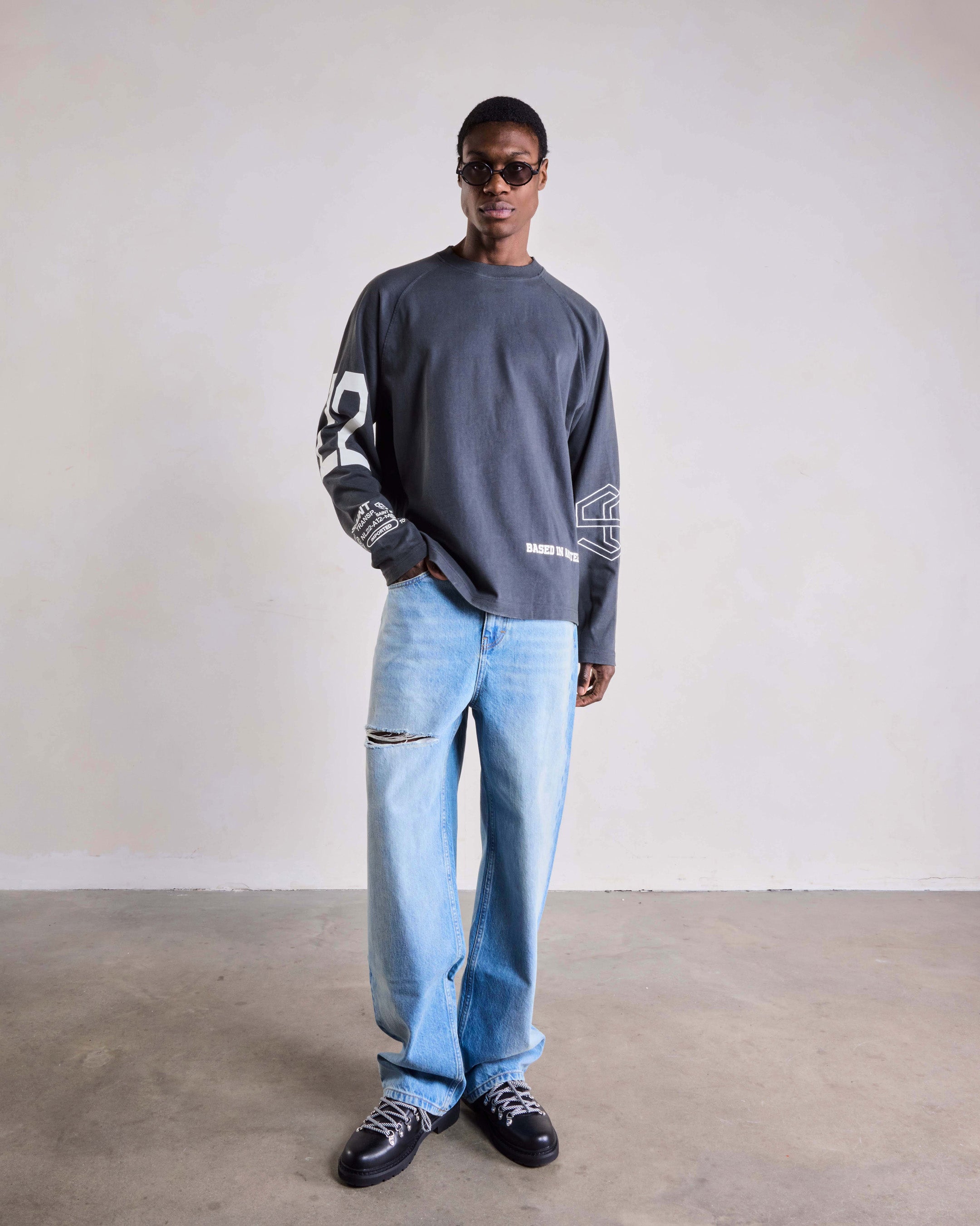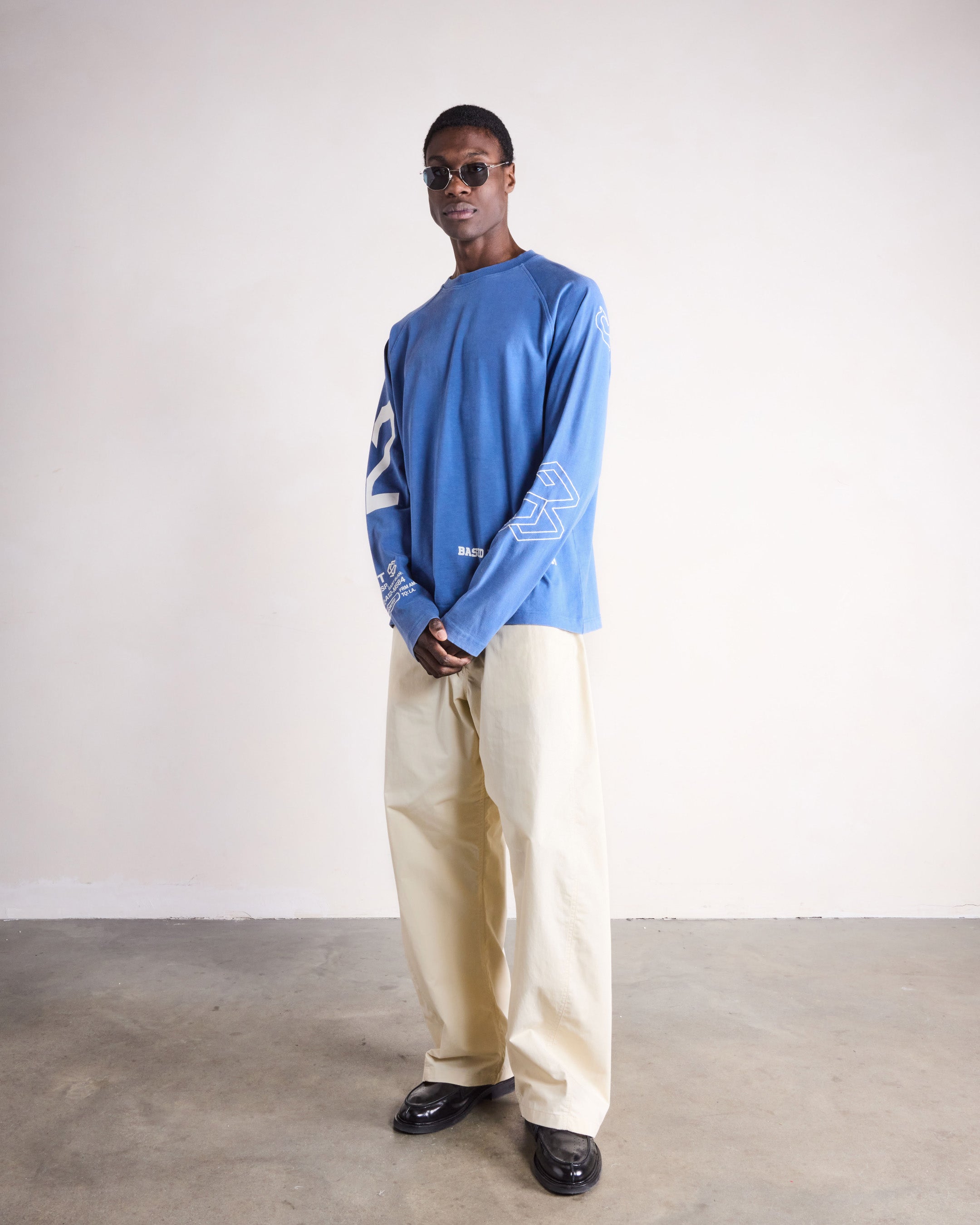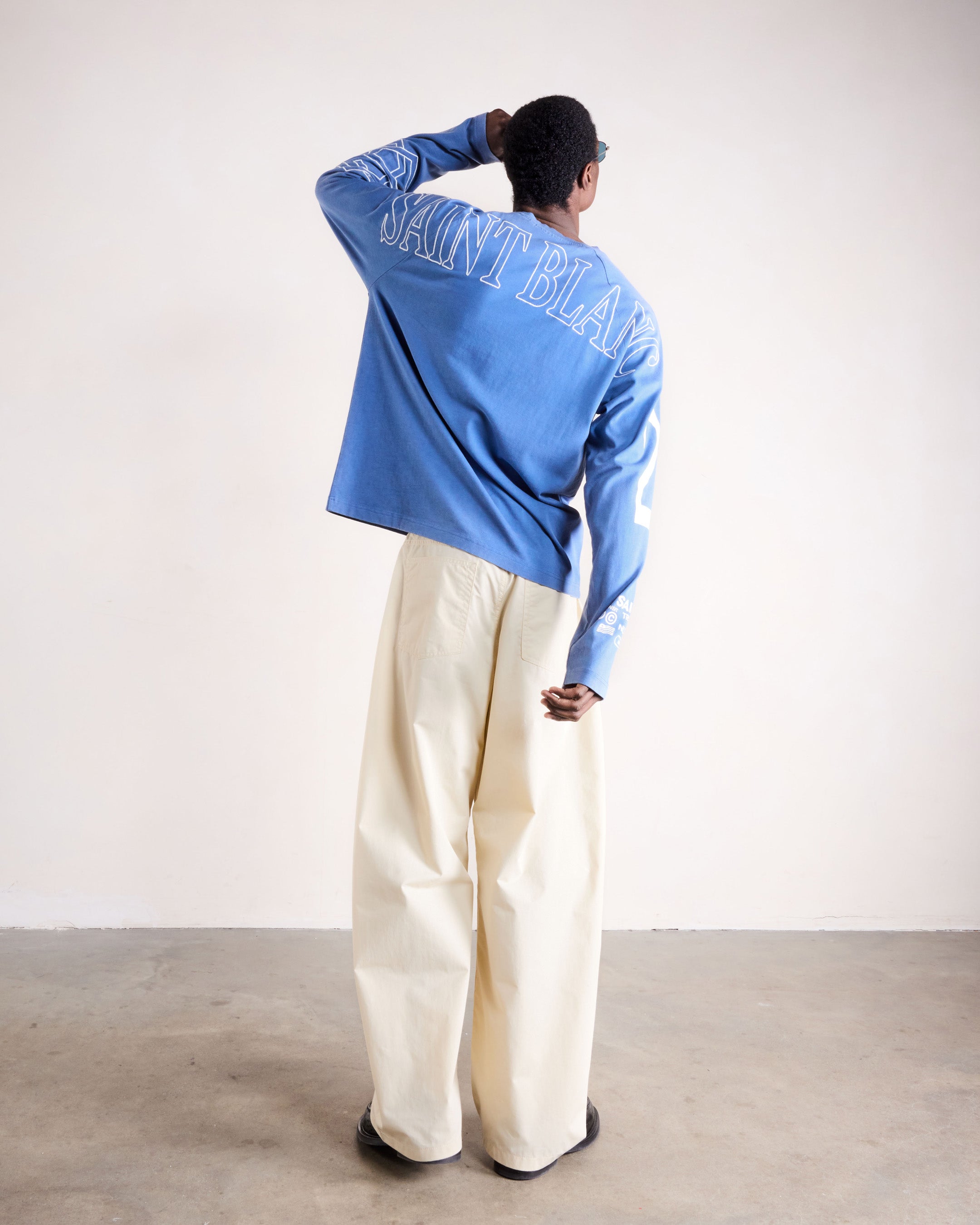 A bold graphic essential rooted in Saint Blanc’s Amsterdam identity. This Longsleeve combines clean structure with statement branding, featuring the signature arched SAINT BLANC print across the back and subtle graphic details throughout the sleeves and hem. Crafted from premium midweight cotton jersey and finished with raglan sleeves for a relaxed, athletic silhouette.