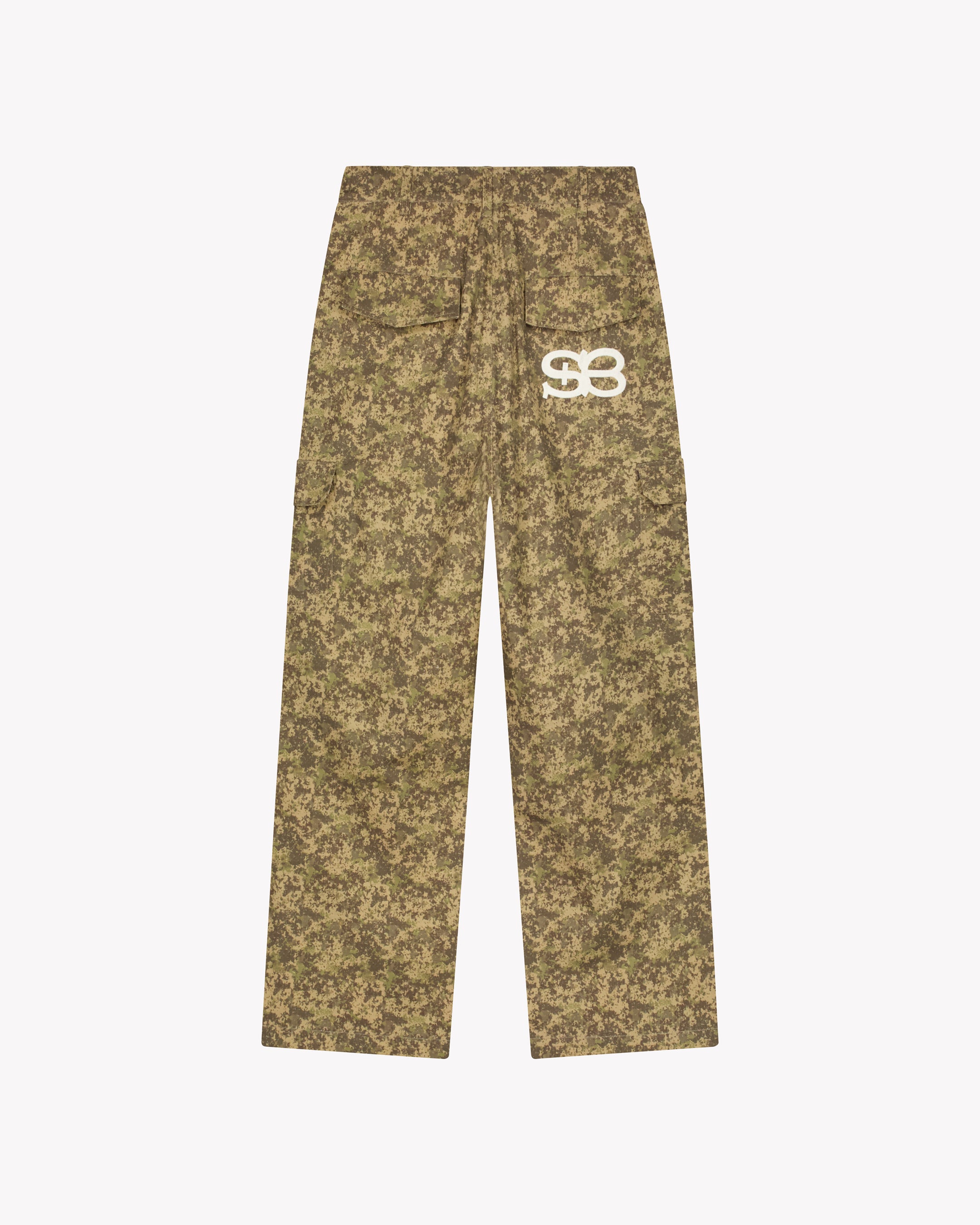 Saint Blanc Custom Camo Cargo Pants – Earth Fade Introducing the Custom Camo Cargo Pants: built for everyday movement. Crafted from heavy cotton with a ripstop weave. The perfect relaxed straight fit and functional side pockets. Finished with the signature SB logo print on the back and minimal rubber patch on the front.